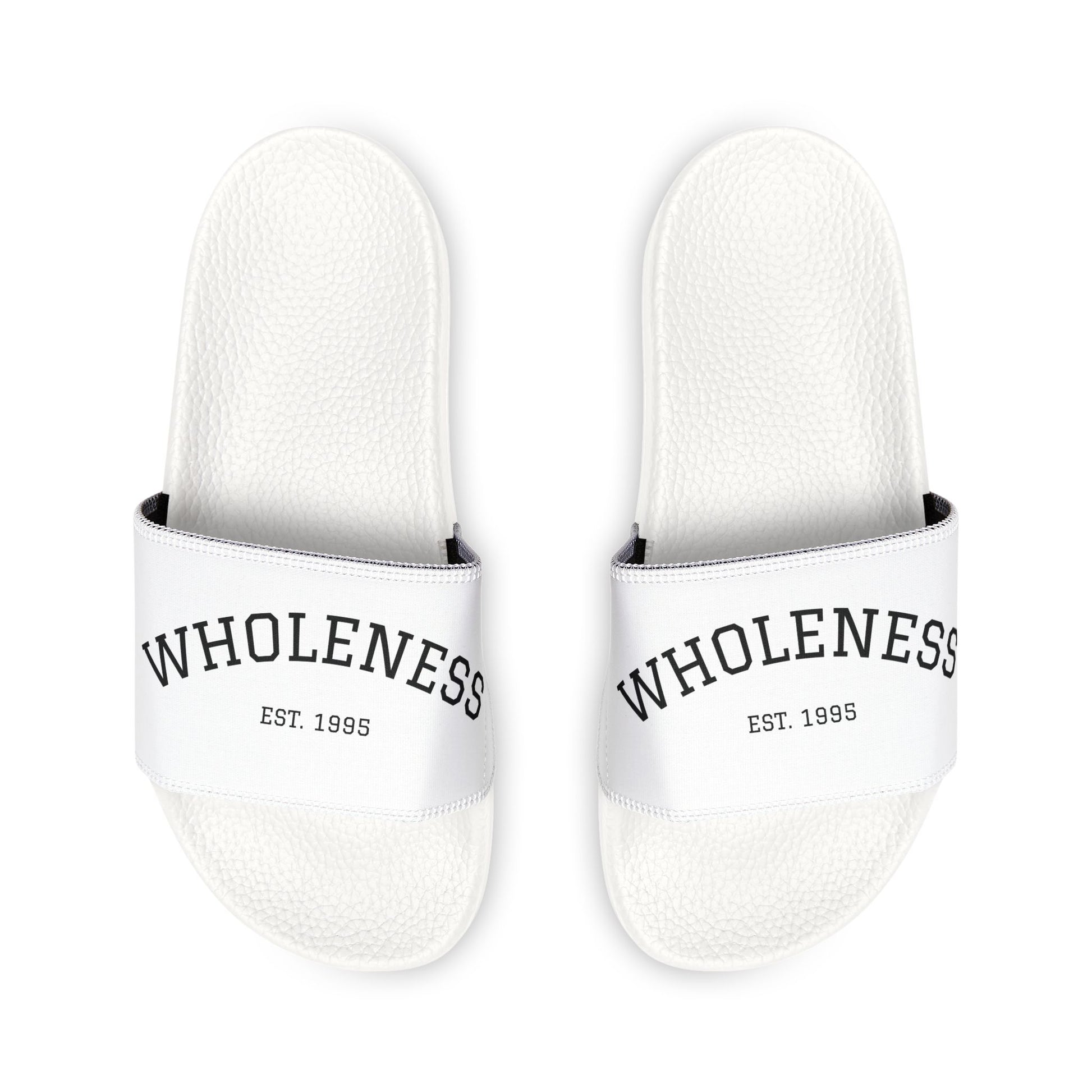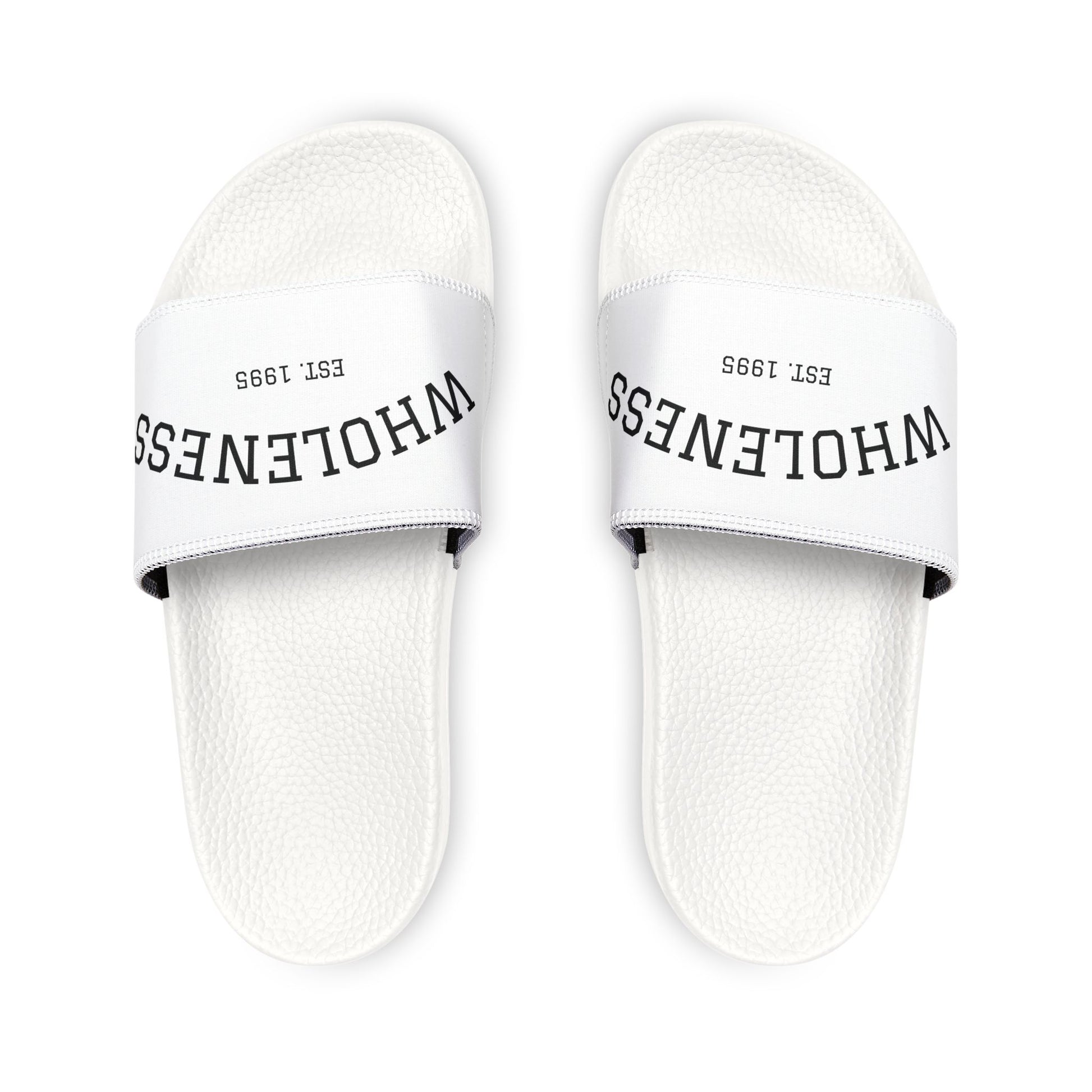 Men's White Slide Sandals — Removable-Strap Casual Pool Slides with 'WHOLENESS' Logo