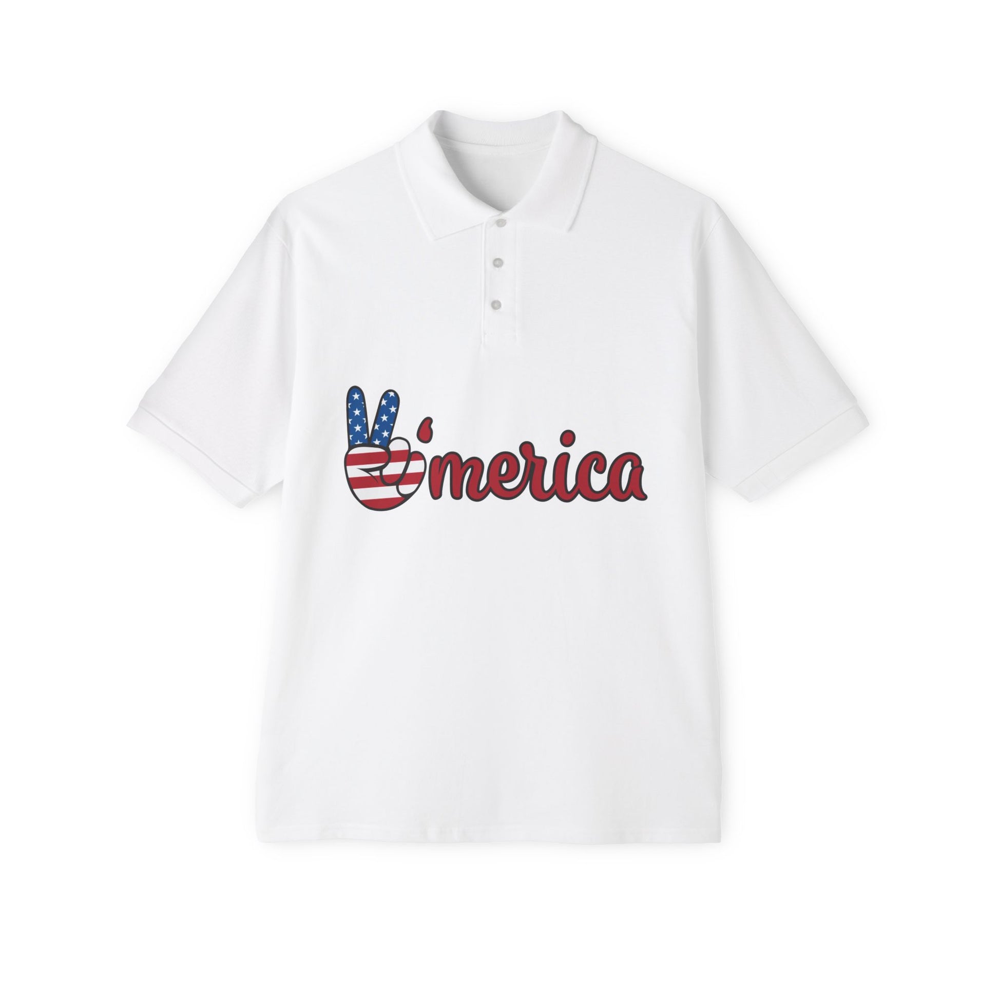 'Merica Patriotic Polo Shirt — USA Flag Peace Sign Men's Polo for 4th of July